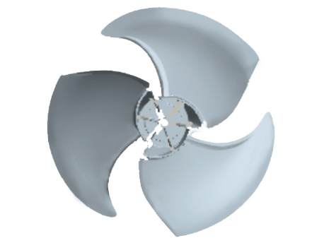 數(shù)萬次CFD仿真模擬,優(yōu)化風(fēng)葉型線,提高換熱性能,并降低噪音3分貝(與本公司老產(chǎn)品相比)。